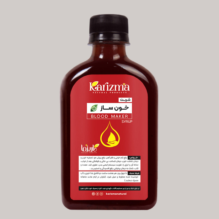 شربت خونساز (حاوی آب آهن تاب شده، شیره انگور، عصاره و گیاهان دارویی خون ساز، شربت فولاد)